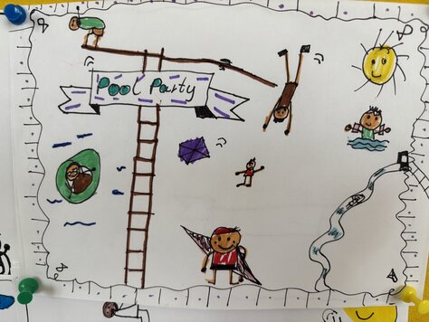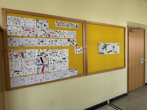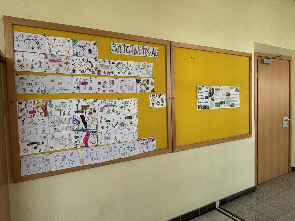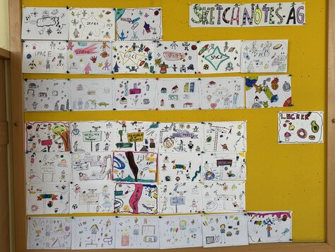 In der Sketchnotes AG von Frau Eichholt haben die Kinder begeistert zu Themen wie zum Beispiel Ich und was ich mag, Pool Party, Menschen in Bewegung und Space in diesem Halbjahr gezeichnet. Einen Teil der Bilder könnt ihr jetzt an der Pinnwand vor dem Lehrerzimmer bewundern. Die Themen, zu denen gezeichnet wurde, haben sich die Kinder selbst ausgedacht. Allen kleinen Künstlerinnen und Künstlern hat das Zeichnen der tollen Bilder sehr viel Spaß gemacht.