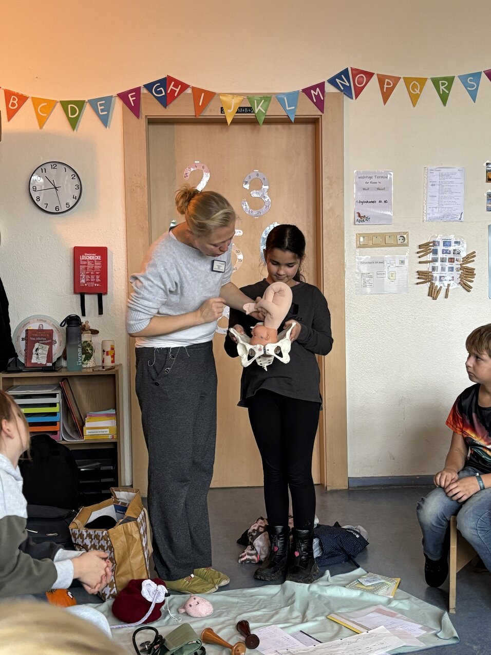 Alle vierten Klassen wurden im Rahmen des Sachunterrichtsthemas „Sexuelle Bildung“ für jeweils zwei Schulstunden von der Hebamme Frau Dannenberg besucht.