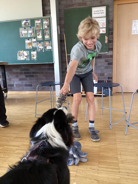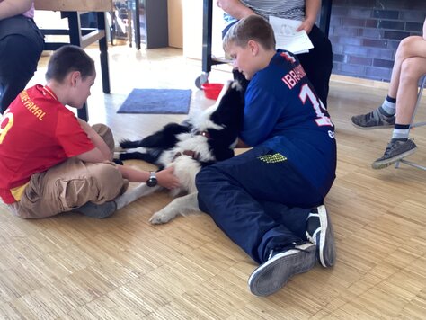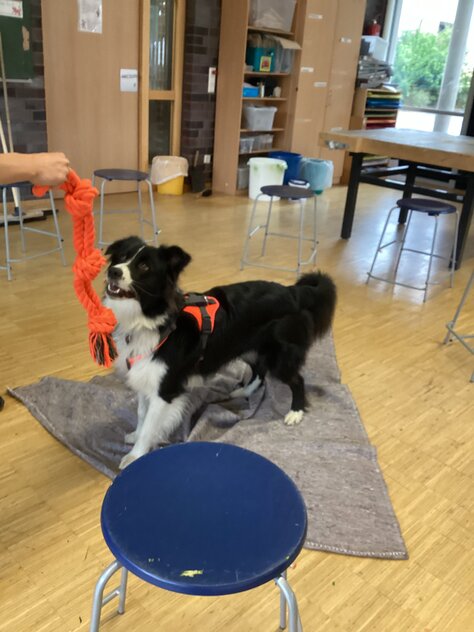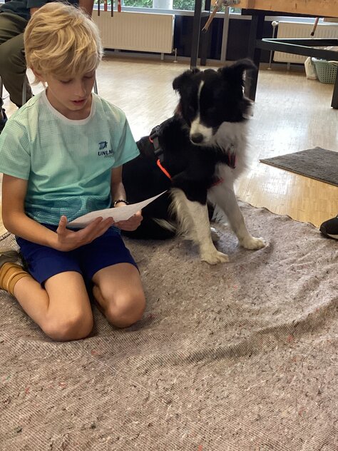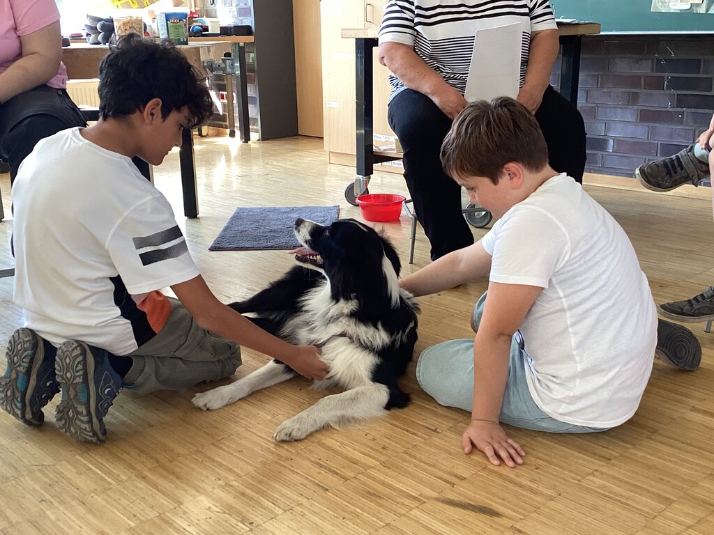 Sam hingegen gibt den Kindern auch ganz viel zurück: Er verteilt seine Aufmerksamkeit und Zuneigung gleichmäßig und hat mit allen schon zahlreiche Tricks und Übungen durchgeführt. Aufregend ist das Ganze schon auch für Sam noch. Denn obwohl man es als Gast der „Schlaue Pfoten-AG“ kaum glauben kann, ist Sam gerade erst ein Jahr alt geworden und hat seine Ausbildung zum Schul- und Therapiehund erst vor wenigen Wochen begonnen.