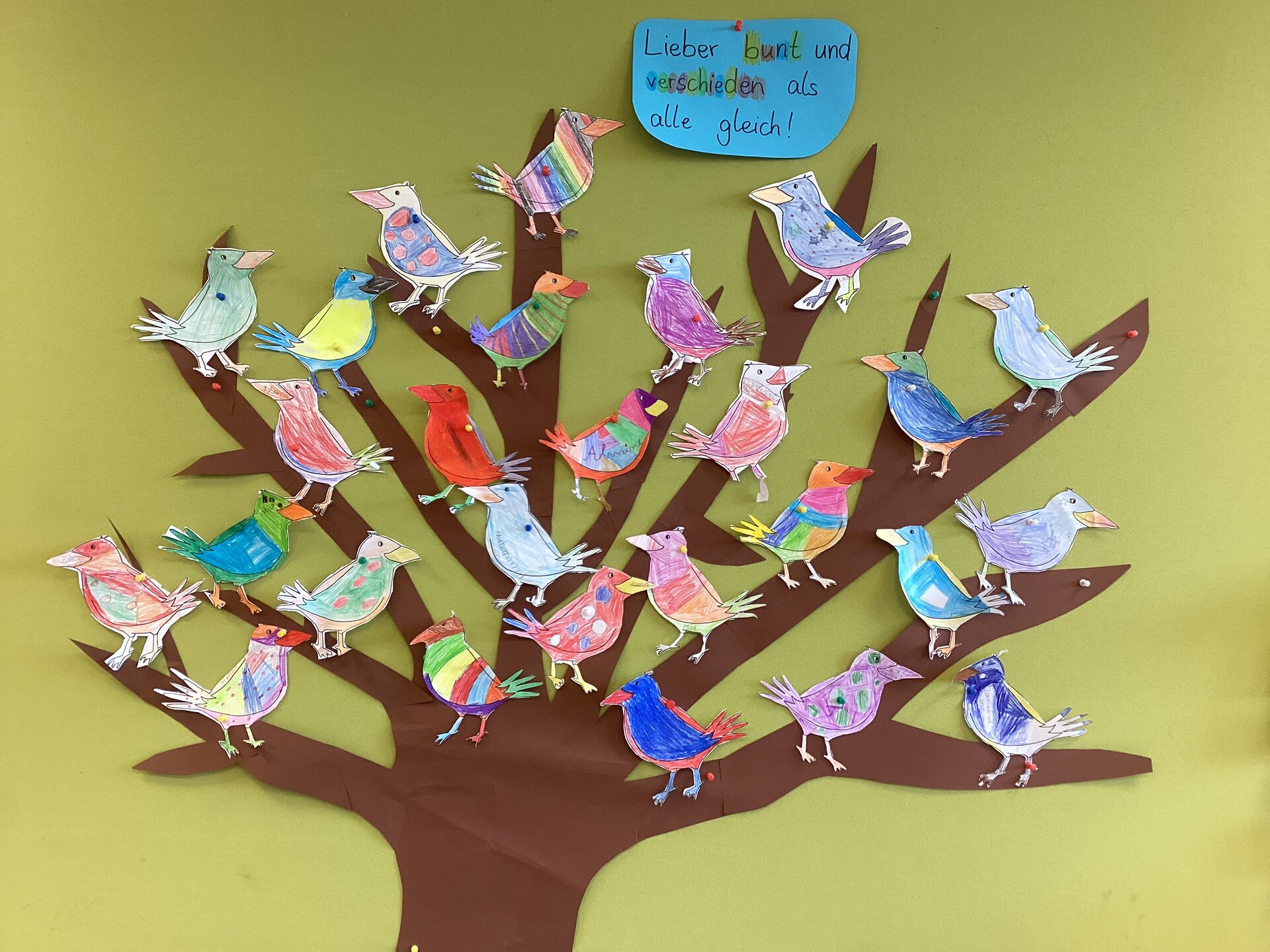 Zum bundesweiten Vorlesetag am 21. November haben die Kinder des zweiten Jahrgangs das Bilderbuch „Als die Raben noch bunt waren“ von Edith Steiner-Wicke und Carola Holland gehört und als Bilderbuchkino angeschaut. Die Geschichte handelt von einer Gruppe von Raben, die ursprünglich alle kunterbunt aussahen und deren Federkleid vielseitige Muster hatte. Nachdem sie von einem Schneemann gefragt werden, wie eigentlich die echten Raben aussehen, beginnen sie zu streiten und grenzen sich gegenseitig aus. Jeder Rabe meint, er hätte die richtige Rabenfarbe. Ein ungewöhnlicher Regen färbt alle Raben schwarz. Nun sehen alle gleich aus und kein Rabe kann sich mehr über das Aussehen streiten. Im Gespräch über die Geschichte waren sich alle Kinder einig. "Wir sind lieber bunt und verschieden als alle gleich! Es wäre sehr langweilig, wenn wir alle gleich wären." Ganz nach unserem Schulmotto: "DU BIST UNS WICHTIG! - WIR SIND UNS WICHTIG!"