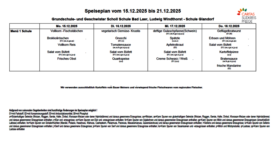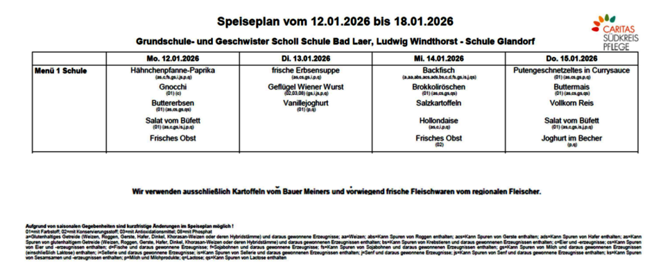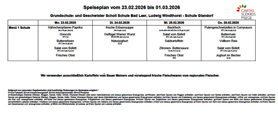 Hinweis: Die Teilnahme am Mittagessen ist nur im Rahmen der Ganztagsschule möglich.