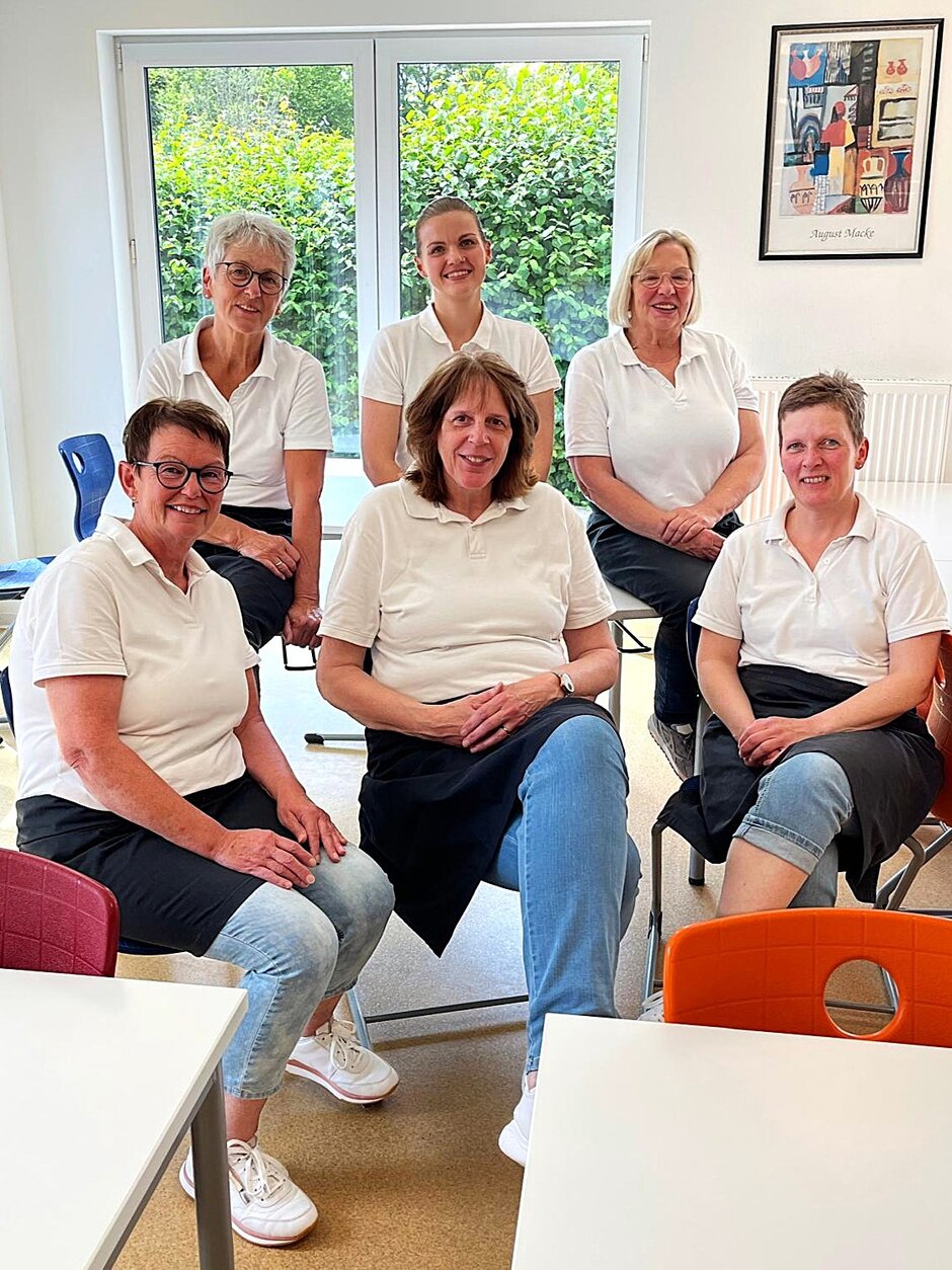 Betreut werden die in feste Gruppen eingeteilten Schülerinnen und Schüler während des Essens von unseren erfahrenen Pädagogischen Mitarbeiterinnen. Alle dürfen sich beim freundlichen Küchenteam unter der Leitung von Christa Peek jederzeit Nachschlag holen und bekommen Hilfe beim Zusammenstellen des Salates oder dem eigenständigen Wegräumen des Tabletts und Geschirrs.