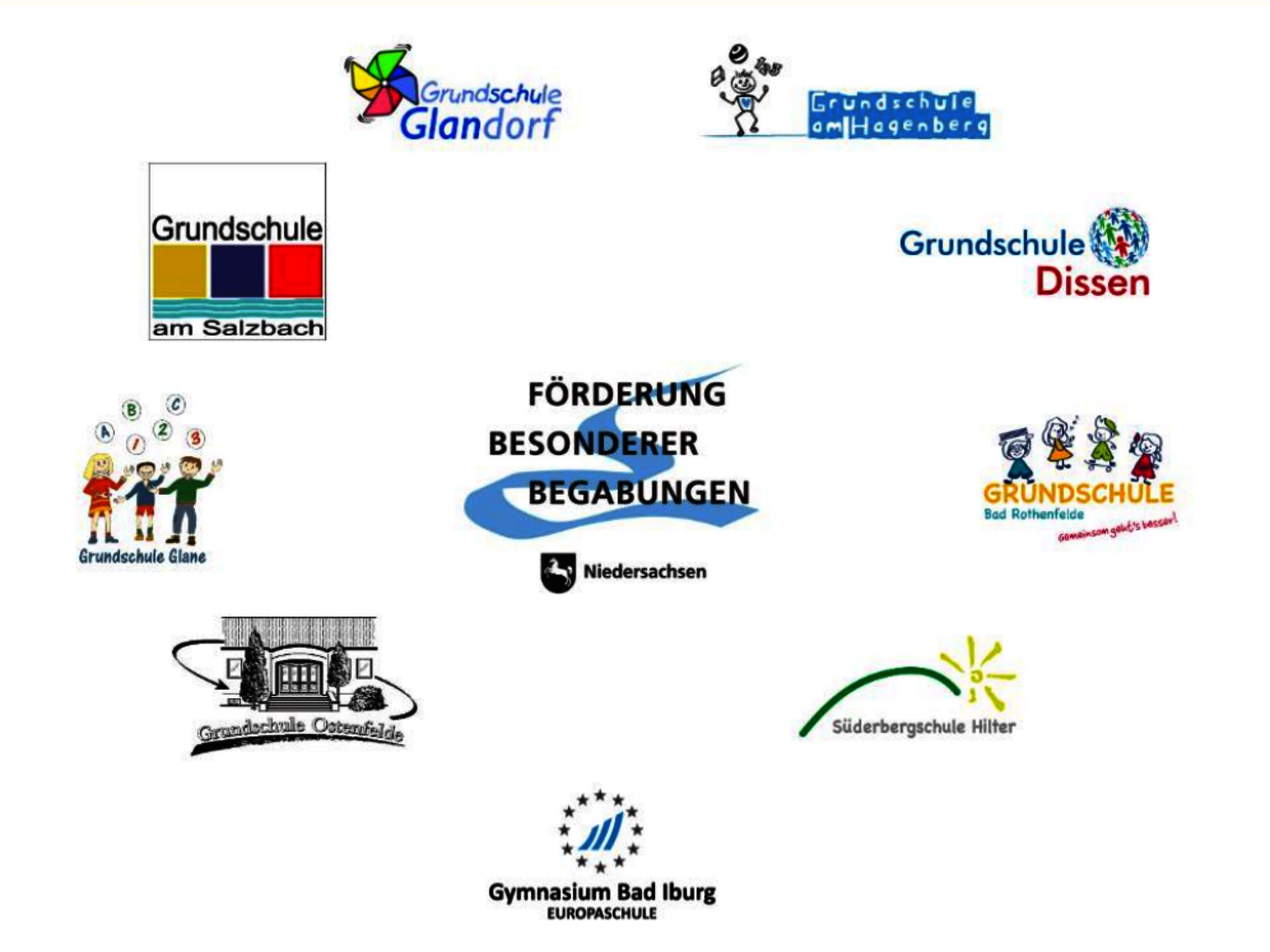 Seit 2009 gehört die Grundschule am Salzbach dem Kooperationsverbund 'Osnabrück Land IV' zur Förderung von Hochbegabung an. Kooperationsverbünde setzen sich aus Gymnasien und angrenzenden Grundschulen zusammen - an unserem Verbund sind insgesamt neun Schulen beteiligt: Das Gymnasium Bad Iburg und die Grundschulen aus Bad Iburg, Glane, Ostenfelde, Dissen, Hilter, Glandorf und Bad Rothenfelde. Ziel unseres Verbundes ist es, individuelle Begabungen schul- und jahrgangsübergreifend zu fördern.